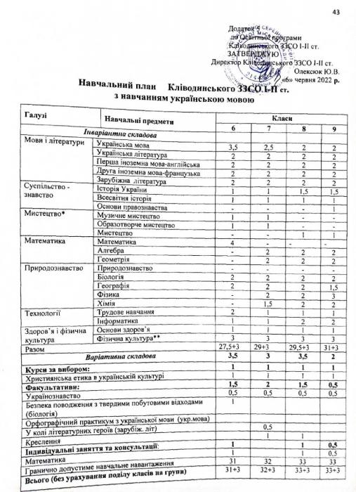 Êë³âîäèíñüêà ã³ìíàç³ÿ ʳöìàíñüêî¿ ì³ñüêî¿ ðàäè > Îñâ³òíÿ ïðîãðàìà 2022-2023