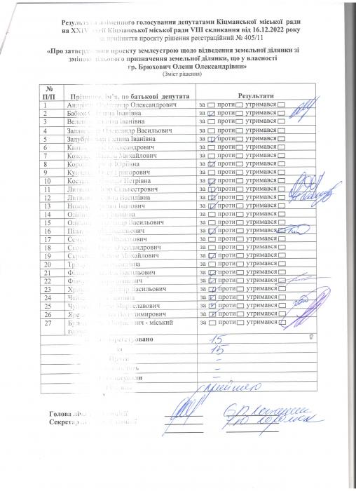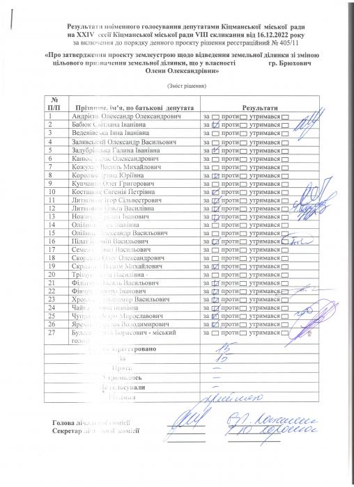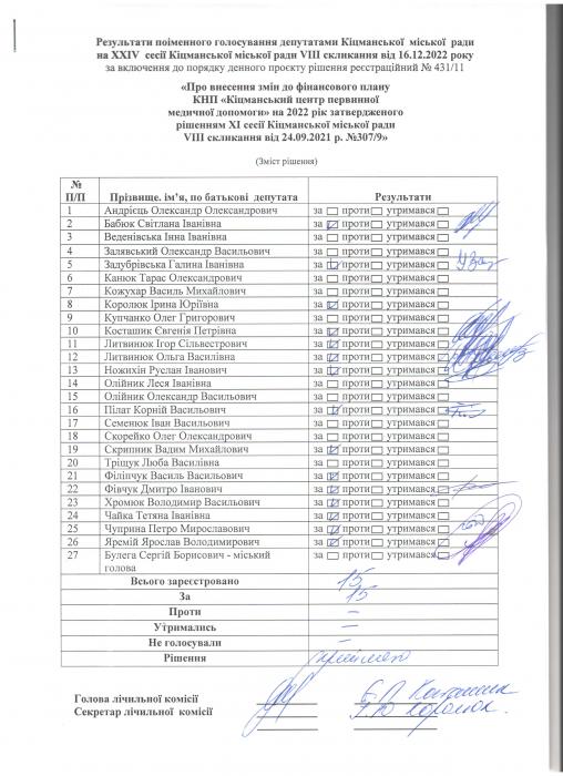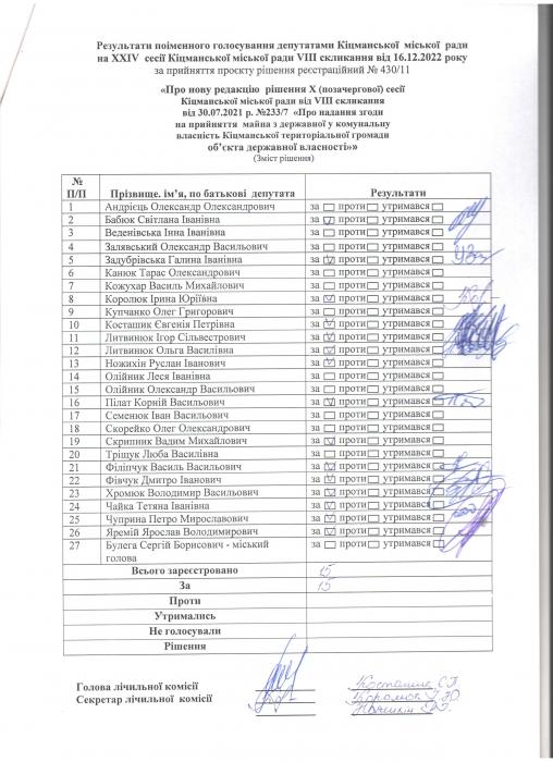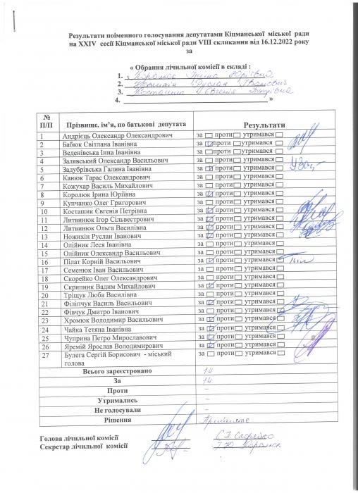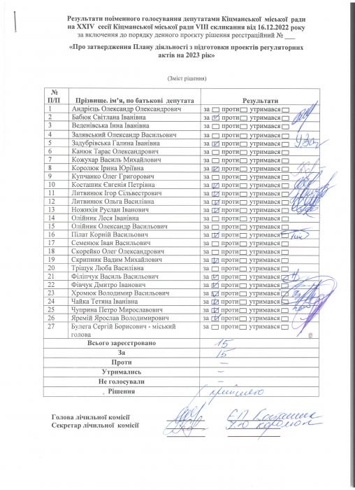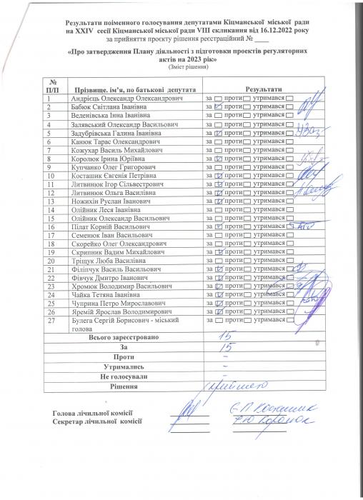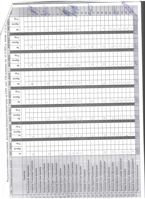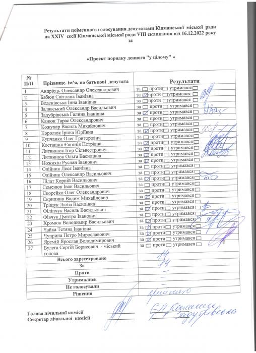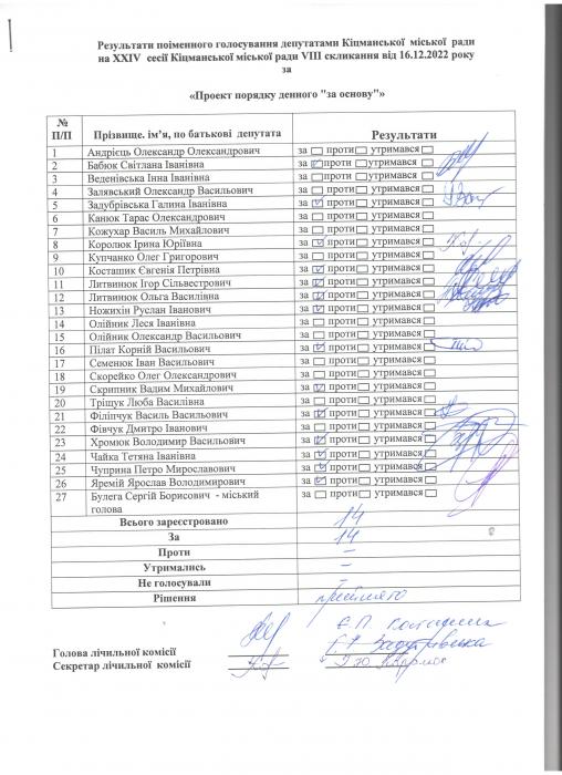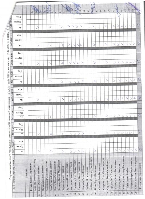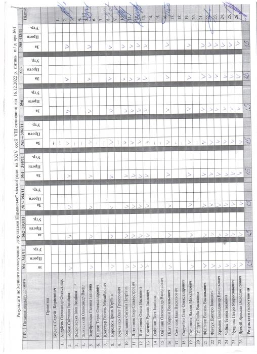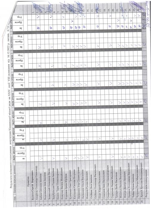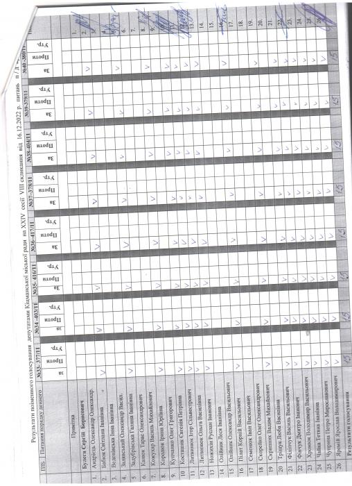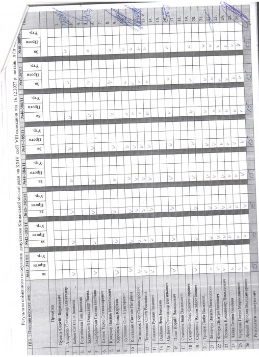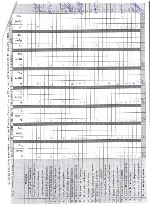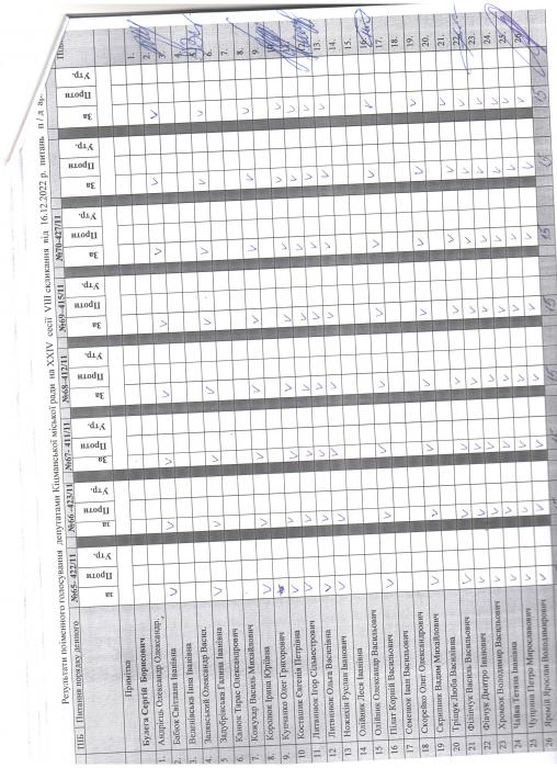XXIV ñåñ³ÿ ʳöìàíñüêî¿ ì³ñüêî¿ ðàäè VIII ñêëèêàííÿ â³ä 16.12.2022 ðîêó > Ðåçóëüòàòè ïî³ìåííîãî ãîëîñóâàííÿ äåïóòàòàìè ʳöìàíñüêî¿ ì³ñüêî¿ ðàäè íà Õ²V ñåñ³¿ ʳöìàíñüêî¿ ì³ñüêî¿ ðàäè VIII ñêëèêàííÿ â³ä 16.12.2021 ðîêó