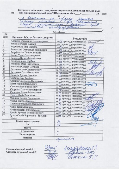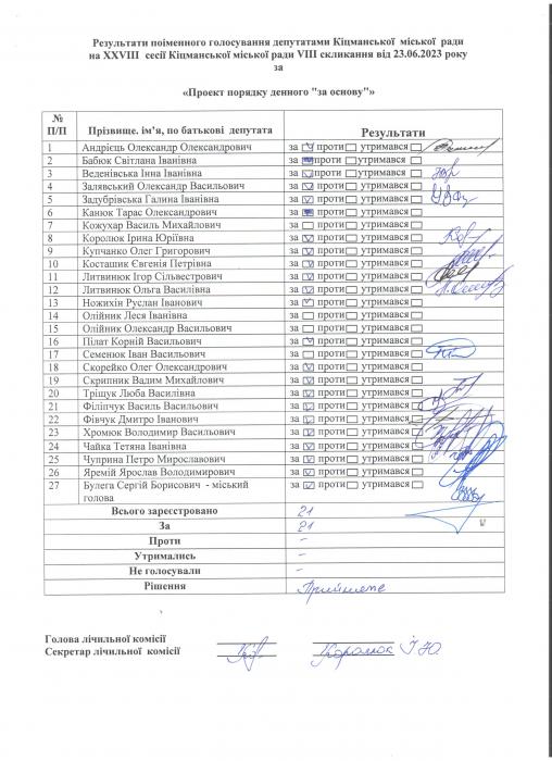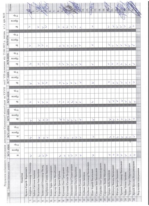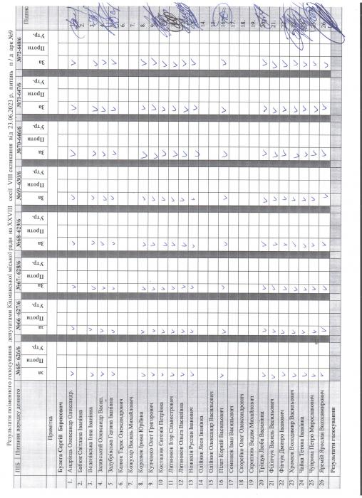 XXVIII ñåñ³ÿ ʳöìàíñüêî¿ ì³ñüêî¿ ðàäè VIII ñêëèêàííÿ â³ä 23.06.2023 ðîêó > Ðåçóëüòàòè ïî³ìåííîãî ãîëîñóâàííÿ íà XXVIII ñåñ³¿ ʳöìàíñüêî¿ ì³ñüêî¿ ðàäè VIII ñêëèêàííÿ â³ä 23.06.2023 ðîêó