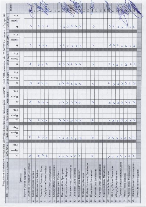Ðåçóëüòàòè ïî³ìåííîãî ãîëîñóâàííÿ íà XXVIII ñåñ³¿ ʳöìàíñüêî¿ ì³ñüêî¿ ðàäè VIII ñêëèêàííÿ â³ä 23.06.2023 ðîêó