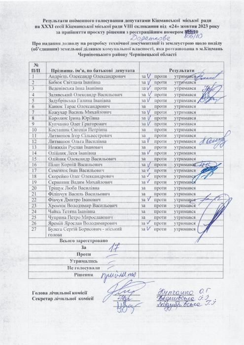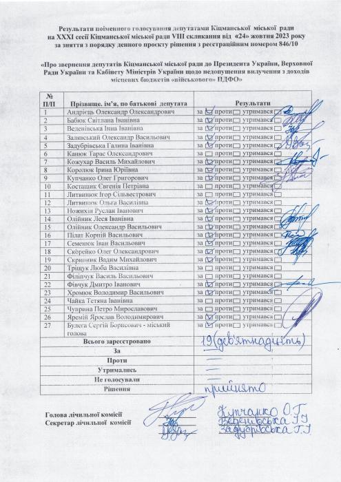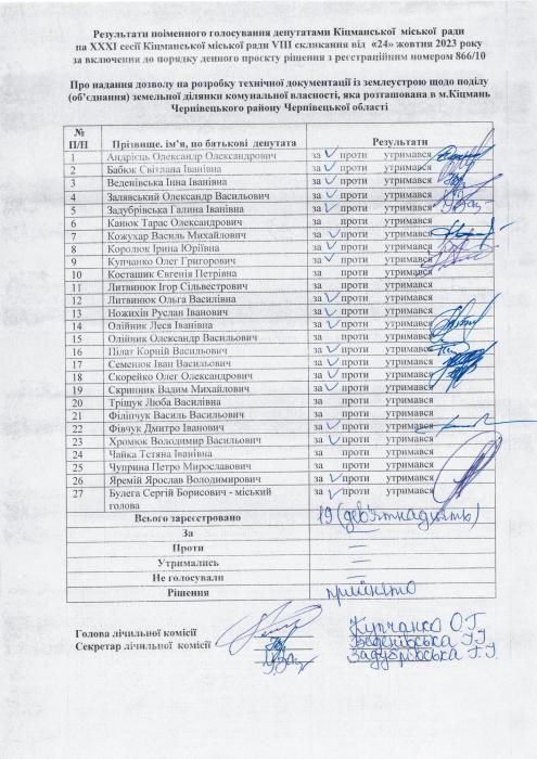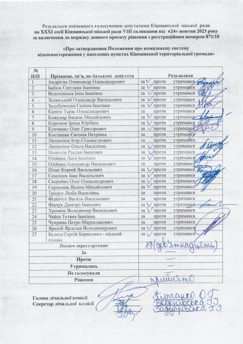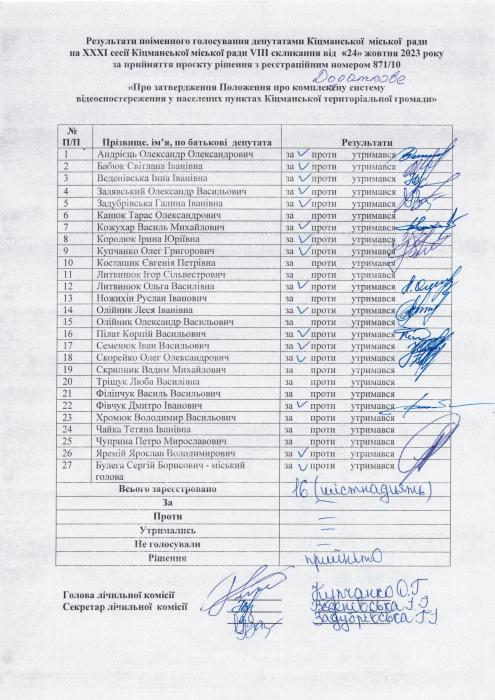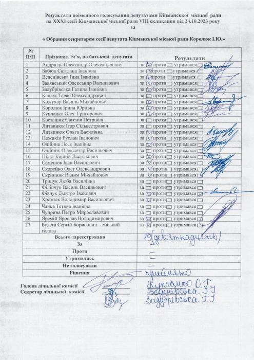 Ðåçóëüòàòè ïî³ìåííîãî ãîëîñóâàííÿ íà XXX² ñåñ³¿ ʳöìàíñüêî¿ ì³ñüêî¿ ðàäè VIII ñêëèêàííÿ â³ä 24.10.2023 ðîêó