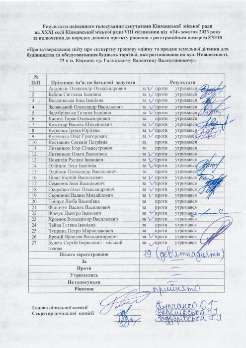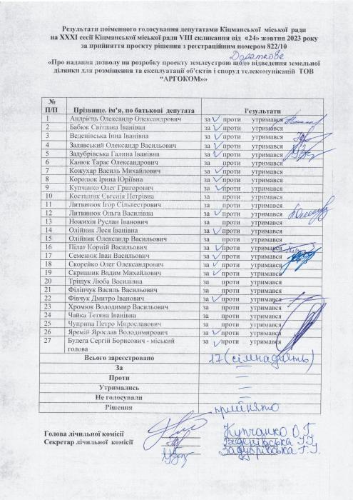 ÕÕÕ² ñåñ³ÿ ʳöìàíñüêî¿ ì³ñüêî¿ ðàäè V²²² ñêëèêàííÿ â³ä 24.10.2023 ðîêó > Ðåçóëüòàòè ïî³ìåííîãî ãîëîñóâàííÿ íà XXX² ñåñ³¿ ʳöìàíñüêî¿ ì³ñüêî¿ ðàäè VIII ñêëèêàííÿ â³ä 24.10.2023 ðîêó