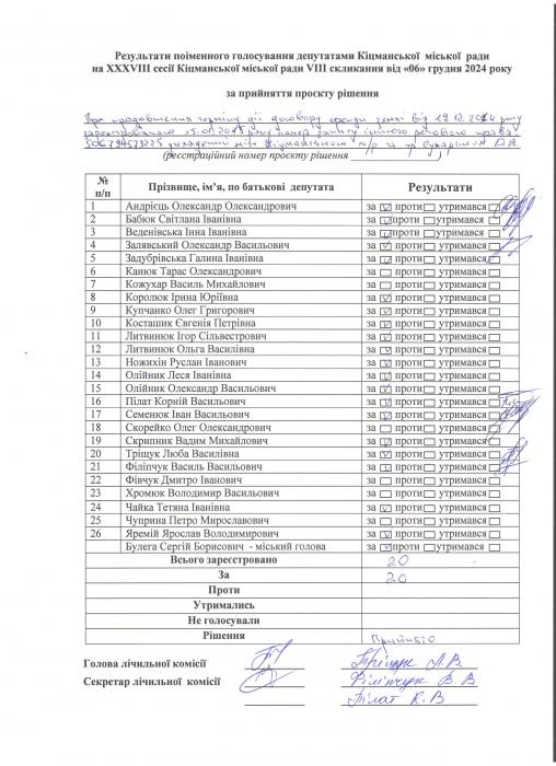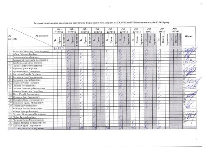 XXXV²²² ñåñ³ÿ ʳöìàíñüêî¿ ì³ñüêî¿ ðàäè V²II ñêëèêàííÿ â³ä 06.12.2024 ðîêó > Ðåçóëüòàòè ïî³ìåííîãî ãîëîñóâàííÿ íà XXXV²²² ñåñ³¿ ʳöìàíñüêî¿ ì³ñüêî¿ ðàäè VIII ñêëèêàííÿ â³ä 06.12.2024 ðîêó