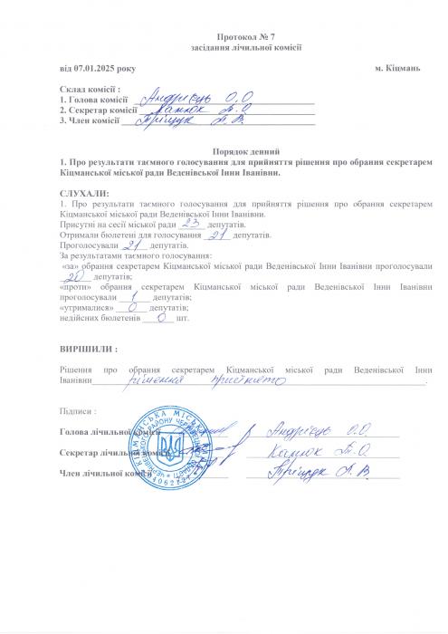 XXX²Õ ñåñ³ÿ ʳöìàíñüêî¿ ì³ñüêî¿ ðàäè V²II ñêëèêàííÿ â³ä 07.01.2024 ðîêó > 5/1 Ïðî îáðàííÿ ñåêðåòàðÿ ʳöìàíñüêî¿ ì³ñüêî¿ ðàäè VIII ñêëèêàííÿ