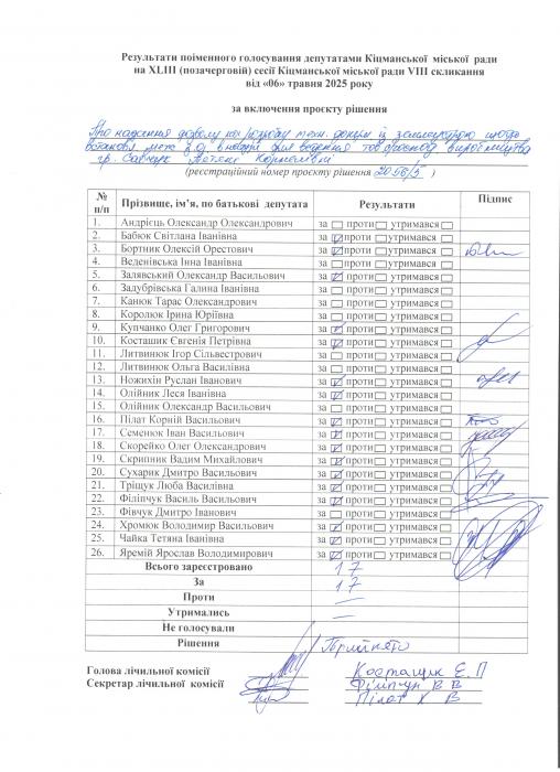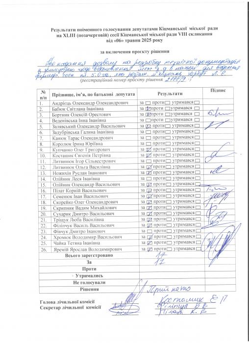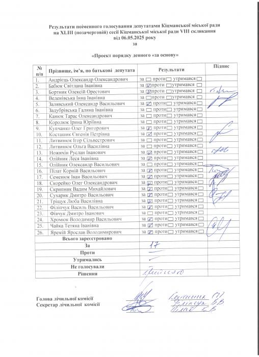XLIII (ïîçà÷åðãîâà) ñåñ³ÿ ʳöìàíñüêî¿ ì³ñüêî¿ ðàäè VIII ñêëèêàííÿ â³ä 06.05.2025 ðîêó. > Ðåçóëüòàòè ïî³ìåííîãî ãîëîñóâàííÿ íà XL²II (ïîçà÷åðãîâ³é) ñåñ³¿ ʳöìàíñüêî¿ ì³ñüêî¿ ðàäè VIII ñêëèêàííÿ â³ä 06.05.2025 ðîêó