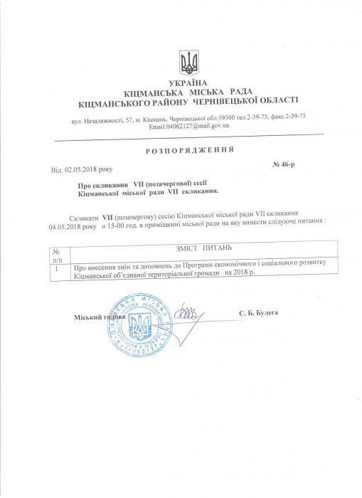 Ðîçïîðÿäæåííÿ ì³ñüêîãî ãîëîâè "Ïðî ñêëèêàííÿ VI² (ïîçà÷åðãîâî¿) ñåñ³¿ ʳöìàíñüêî¿ ì³ñüêî¿ ðàäè V²I ñêëèêàííÿ"