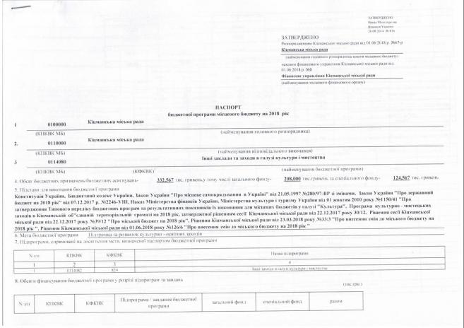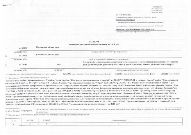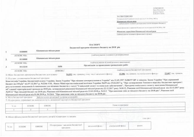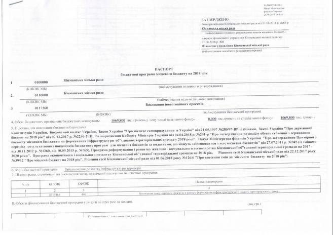 Ïàñïîðòè áþäæåòíèõ ïðîãðàì ʳöìàíñüêî¿ ì³ñüêî¿ ðàäè íà 2018 ð³ê