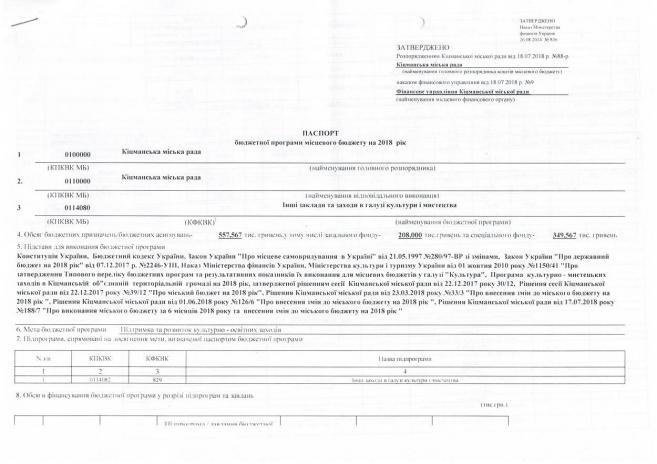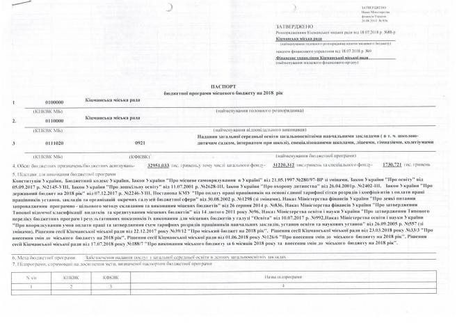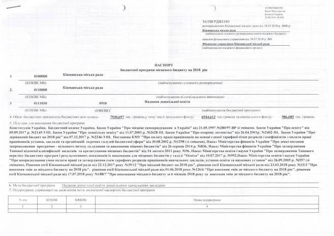 Ïàñïîðòè áþäæåòíèõ ïðîãðàì ʳöìàíñüêî¿ ì³ñüêî¿ ðàäè íà 2018 ð³ê