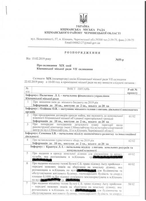 Ïðî ñêëèêàííÿ XIX ñåñ³¿ ʳöìàíñüêî¿ ì³ñüêî¿ ðàäè VII ñêëèêàííÿ