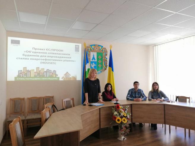 Сьогодні в малій залі районної адміністративного будинку районної ради відбувся семінар за участю голів утворених ОСББ та представників багатоквартирних житлових будинків, під час якого відбулася презентація проекту міжнародної технічної допомоги Програми розвитку Організації Об’єднаних Націй в Україні спільно із Європейським Союзом «Об’єднання співвласників будинків для впровадження сталих енергоефективних рішень» (HOUSES).