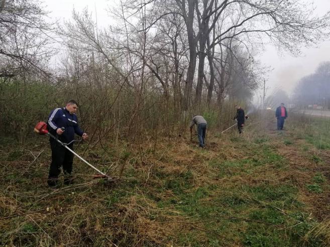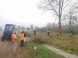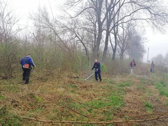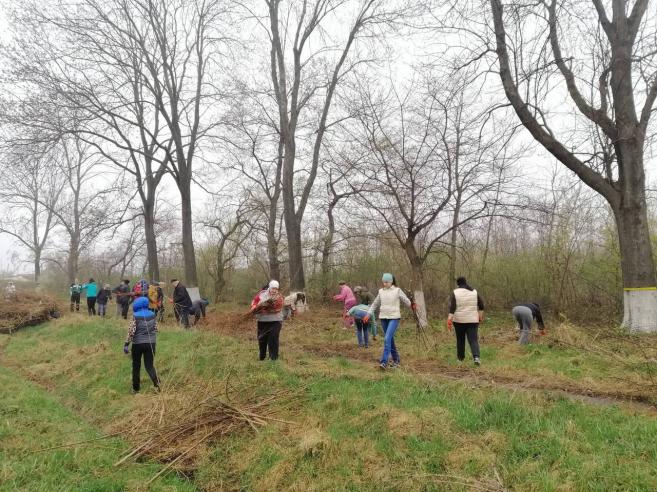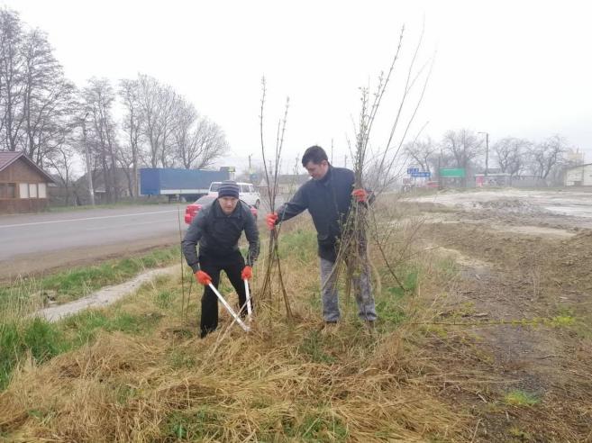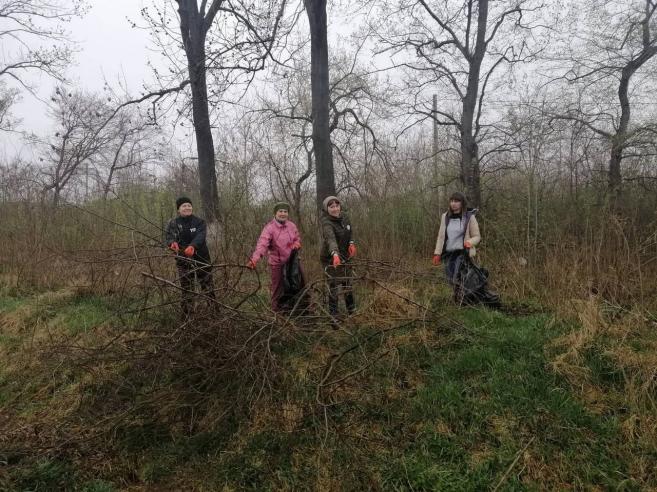 Незважаючи на похмуру і вологу погоду, проведено значний обсяг робіт: чоловіки бензопилами спилюють більш крупну поросль, спеціальними секаторами та сокирками обрізують менші пагони. Жінки вже зібрали сміття, білять дерева, які перед цим було помарковано.