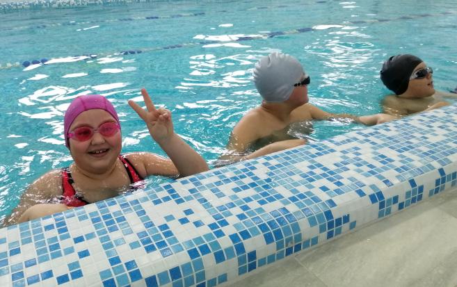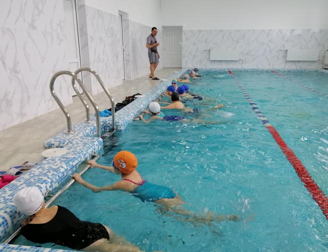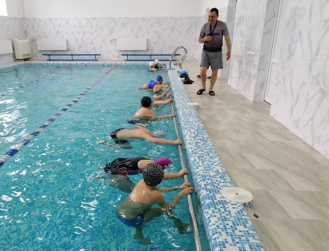 А вже сьогодні, під час першого уроку плавання після розминки тренувалися у воді, виконували різні вправи, навчалися затримувати дихання.