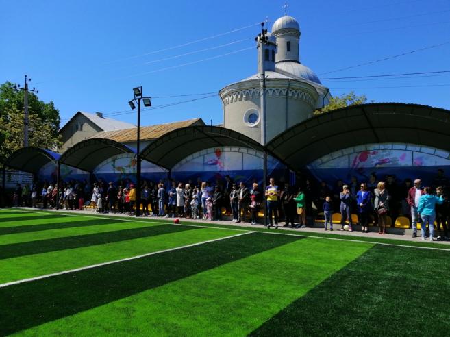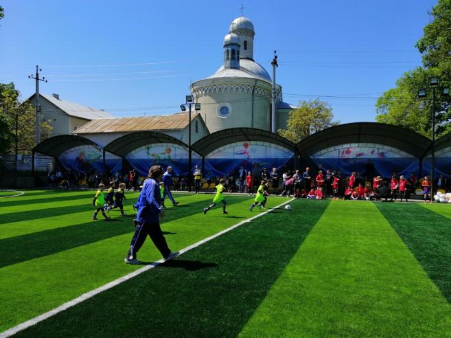 9 òðàâíÿ, ñîíÿ÷íî¿ ïîãîæî¿ äíèíè, íà ʳöìàíñüêîìó ì³ñüêîìó ñòàä³îí³ ³ì. Ãåðî¿â Ìàéäàíó â³äáóëîñÿ â³äêðèòòÿ ôóòáîëüíîãî ïîëÿ ç³ øòó÷íèì ïîêðèòòÿì ï³ñëÿ ðåêîíñòðóêö³¿.