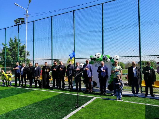 Ïðèâ³òàëè ì³ñòÿí íàðîäíèé äåïóòàò Óêðà¿íè ²âàí Ðèáàê, ÿêèé ñïðèÿâ âèä³ëåííþ êîøò³â íà îíîâëåííÿ ïîëÿ, ʳöìàíñüêèé ì³ñüêèé ãîëîâà Ñåðã³é Áóëåãà, â.î. ãîëîâè ÐÄÀ Þð³é Êîñàð, ãîëîâà ôåäåðàö³¿ ôóòáîëó ×åðí³âåöüêî¿ îáëàñò³ Âàñèëü Îðëåöüêèé. Îñâÿòèâ ïîëå î. Þð³é Êàâ'þê.