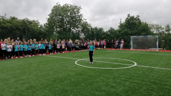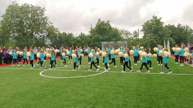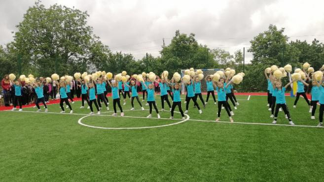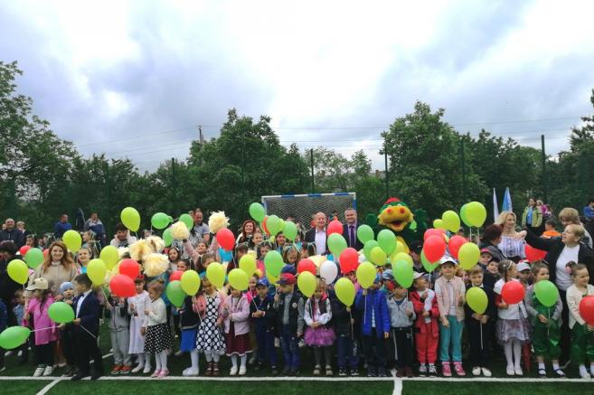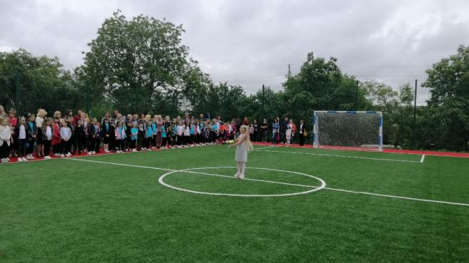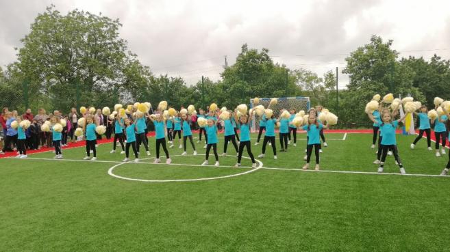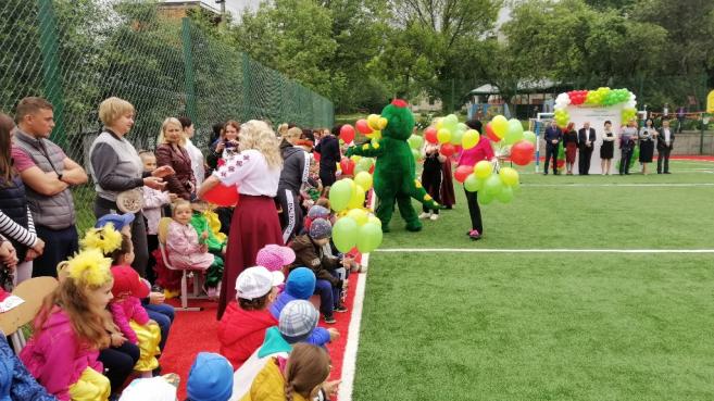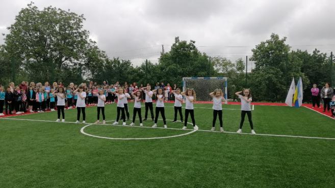 Після цього урочисто перерізали стрічку, перші голи у ворота нового майданчику забили юні спортсмени НВК, які успішно займаються футболом. Чудовими яскравими виступами підняли настрій маленькі дошкільнята та їх старші вихованці комплексу. Для присутніх розквітали квіти-парасольки і літали метелики, лунали вірші, активно рухалися діти під час танцювального флеш-мобу та запальних спортивних танців, співали талановиті вокально-обдаровані учні.