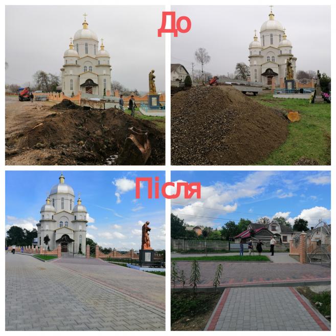 Досі впорядкувати площу не було можливості, бо тривав благоустрій подвір’я та огорожі сільської церкви, яка розміщена в центрі села і прилягає до цієї території. Та щойно парафіяльна громада встановила нову огорожу, міська рада за спрямувала всі зусилля на оновлення центральної площі села.