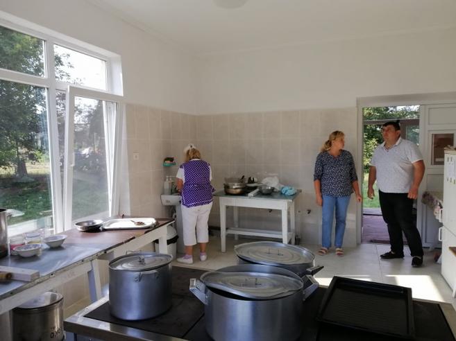 Надзвичайно рада завідуюча Лашківським ЗДО Анна Фурман та колектив кухарів ремонтом у кухонному блоці. Досі стіни кухні зяяли цеглою, посеред приміщення підлога просіла, утворивши яму, стеля була в геть жахливому стані, були проблеми з водогоном та водовідведенням. А тепер це світла і чиста кухня, на стінах та підлозі укладено керамічну плитку, вирівняно і пошпакльовано стелю, відновлено водозабезпечення, а днями сюди завезуть нову зручну мийку та витяжку.