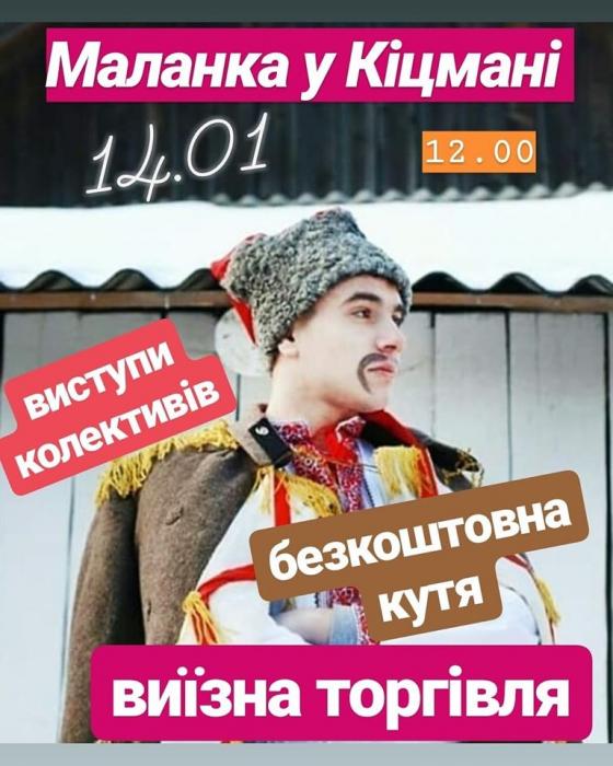 14 ñ³÷íÿ ó ʳöìàí³ á³ëÿ ì³ñüêî¿ ÿëèíêè â³äáóäåòüñÿ îãëÿä-êîíêóðñ ìàëàíîê. Ó ïðîãðàì³ ñâÿòà âèñòóïè âèñòóïè ìàëàíêóâàëüíèõ òà ùåäðóâàëüíèõ êîëåêòèâ³â, áåçêîøòîâíà êóòÿ, âè¿çíà òîðã³âëÿ ç õàð÷óâàííÿì, òåïëèìè íàïîÿìè, ñóâåí³ðíîþ ïðîäóêö³ºþ òà òîâàðàìè äëÿ ä³òåé.