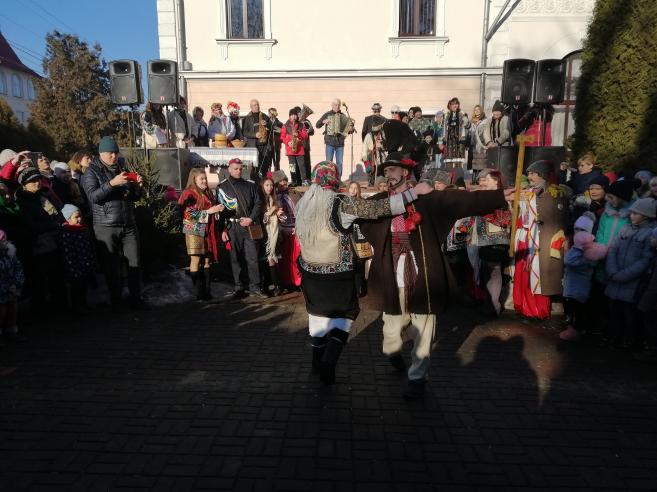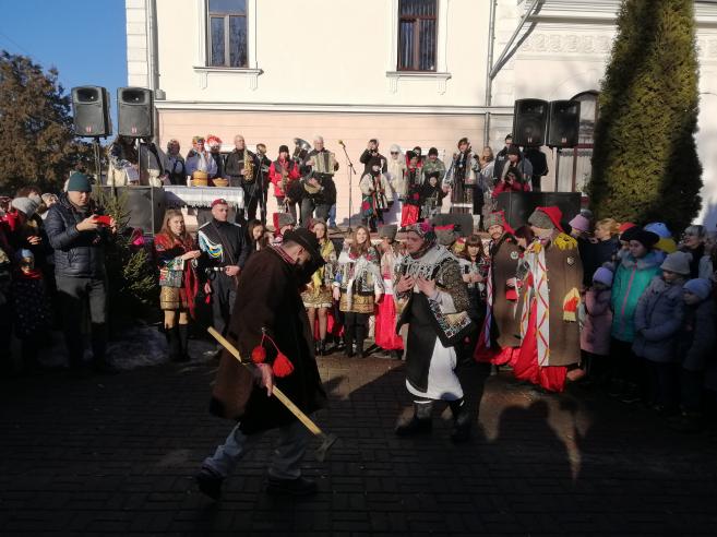 Та найбільше очікували появи знаної Суховерхівської маланки. Дійство, яке вони презентували сповнене динаміки: тут і посівання, щедрування, віночок українських народних танців, і безпосередньо маланкування з усіма головними властивими персонажами – Маланкою та Іваном, чортом, жидом та козою. А козаки, які вправно танцюють аркан довершують виступ суховерхівців.