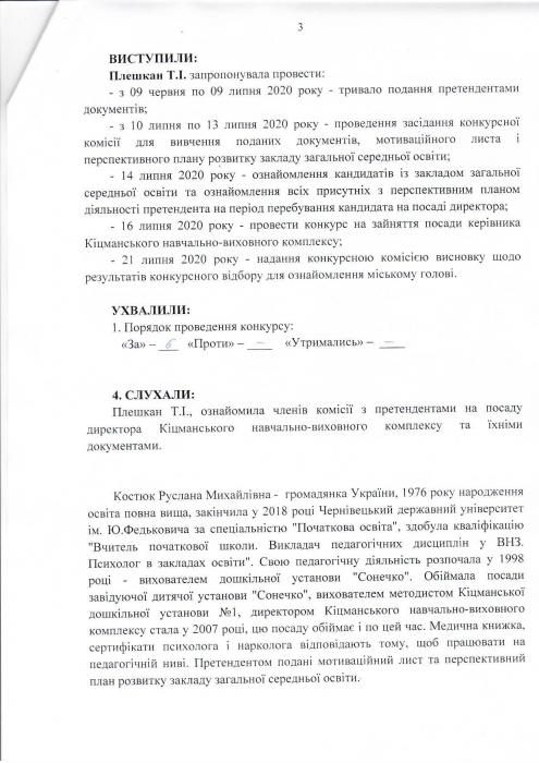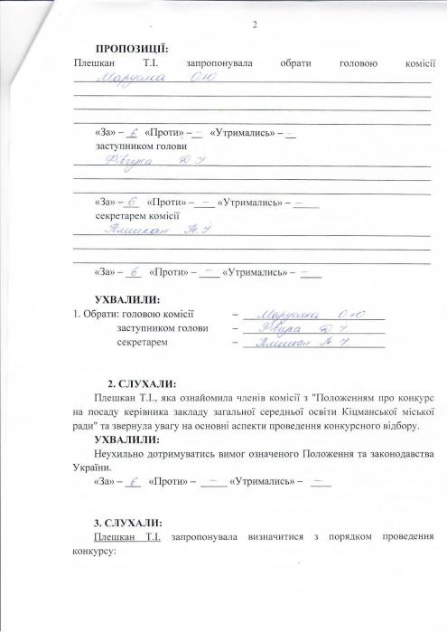 Протокол засідання конкурсної комісії на заміщення посади директора Кіцманського навчально-виховного комплексу