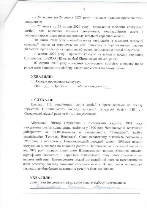 Протокол засідання конкурсної комісії на заміщення посади директора Шипинецького ЗЗСО І-ІІІ ступенів Кіцманської міської ради