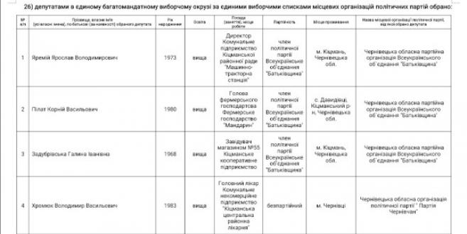 Результати виборів депутатів до Кіцманської міської ради ОТГ восьмого скликання