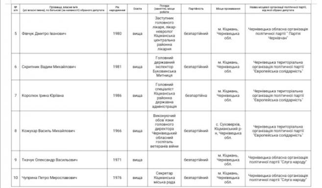 від "Партії Чернівчан"