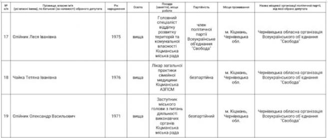 від Всеукраїнського Об'єднання "Свобода" Олійник Леся Іванівна