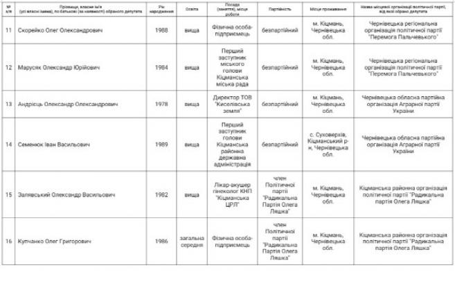 З десяти політичних партій, які висували кандидатів в депутати, у Кіцманській міській раді восьмого скликання представлені вісім.