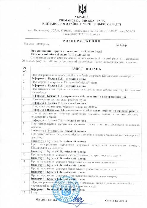 Ïðî ñêëèêàííÿ äðóãîãî ïëåíàðíîãî çàñ³äàííÿ ² ñåñ³¿ ʳöìàíñüêî¿ ì³ñüêî¿ ðàäè VIII ñêëèêàííÿ
