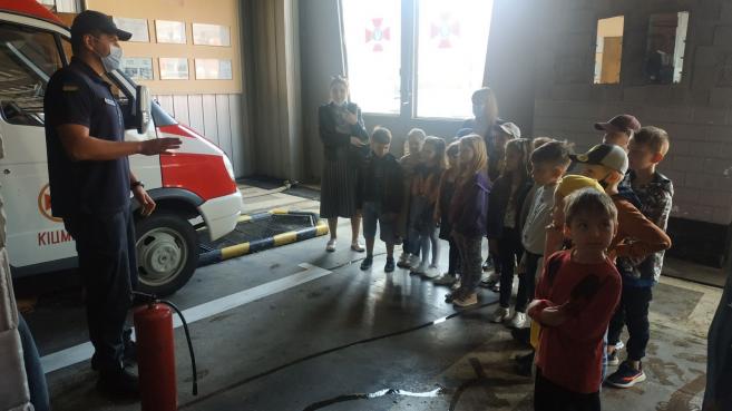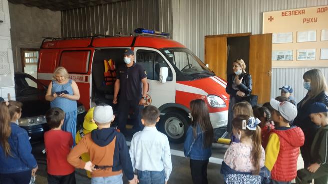 Ñï³âðîá³òíèêè Ñëóæáè ïîðÿòóíêó «101» ðîçïîâ³ëè ä³òÿì ïðî ïîæåæíî-ðÿòóâàëüíå îáëàäíàííÿ òà ïðîäåìîíñòðóâàëè ÿê âîíî âèêîðèñòîâóºòüñÿ. Êîæåí áàæàþ÷èé ìàâ çìîãó â³ä÷óòè ñåáå ó ðîë³ âîãíåáîðöÿ, ë³êâ³äóþ÷è óìîâíå çàéìàííÿ.