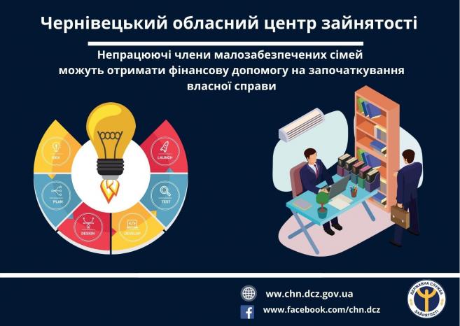 Із січня 2022 року непрацюючі члени малозабезпечених сімей, які зареєстровані як безробітні, мають можливість отримати фінансову допомогу на започаткування власної справи, а за необхідності – безкоштовне навчання.