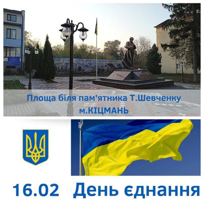 Запрошуємо жителів громади завтра, 16 лютого, на площі біля пам'ятника Т.Шевченку в Кіцмані долучитися до підняття Державного Прапора і спільно виконати Гімн України.