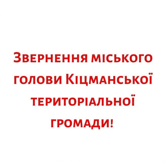 ЗВЕРНЕННЯ МІСЬКОГО ГОЛОВИ КІЦМАНСЬКОЇ ТЕРИТОРІАЛЬНОЇ ГРОМАДИ!
