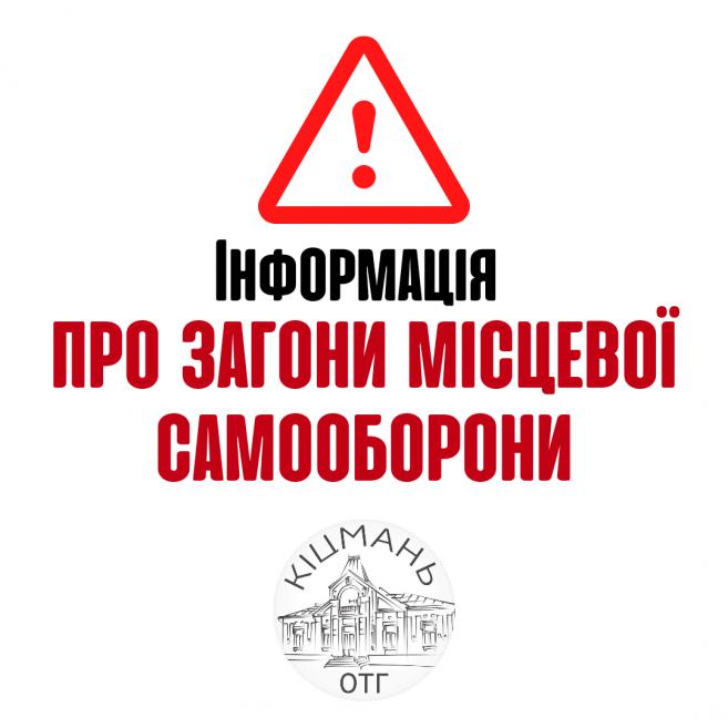 Сьогодні Кіцманською міською радою проводяться заходи щодо створення та ефективного функціонування загонів місцевої оборони на території Кіцманської територіальної громади, зокрема в м.Кіцмань та с.Шипинці. Ведуться консультації з військовими та поліцією щодо можливості носіння при патрулюванні зброї, на яку є відповідний дозвіл.