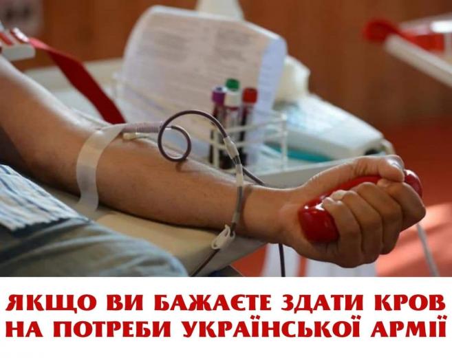 Інформація для тих, хто бажає здати кров на потреби Української армії!