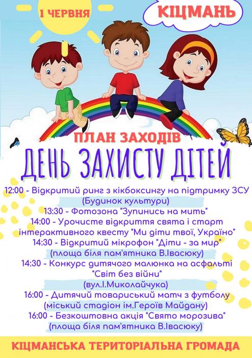 Запрошуємо 1 червня на заходи у Кіцмані, присвячені Міжнародному дню захисту дітей