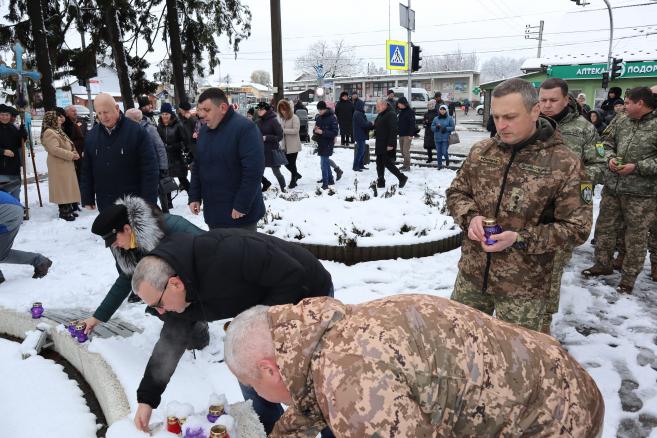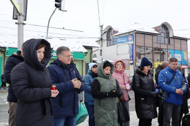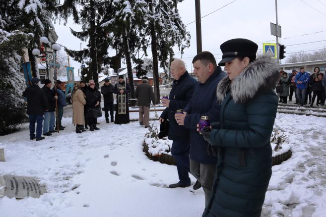 Після панахиди, яку провів настоятель Свято-Миколаївської ПЦУ м.Кіцмань о.Юрій Кавюк, керівництво громади, працівники міської ради і бюджетних установ, громадськість поклали запалені лампадки в пам’ять про мільйони закатованих співвітчизників.