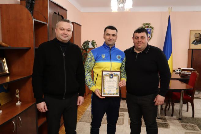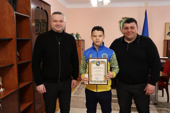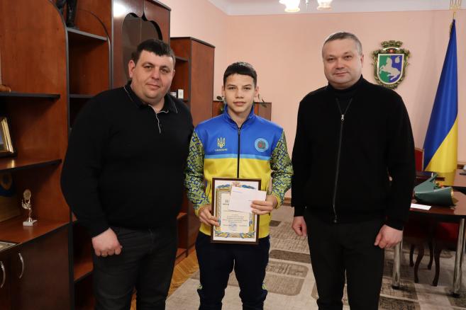 🏆💐 Привітали і нагородили вихованців Кіцманської дитячо-юнацької комплексної спортивної школи та їх тренера, директора ДЮКСШ Сергія Хрептуна, за гідне представлення нашої громади у фіналі Кубку Європи з кікбоксингу WAKO Karlovac Open-2023 (Хорватія). Подяки Кіцманської міської ради та грошові премії як заохочення за високі досягнення міський голова Сергій БУЛЕГА і перший заступник міського голови Олександр МАРУСЯК вручили володарці Кубку Європи Ангеліні ФІЛІПЧУК, бронзовому призеру Андрієві РУСНАКУ та учаснику змагань Сергію РУСНАКУ.