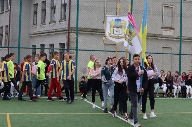 Ñïðàâæíº çàõîïëèâå ä³éñòâî ðîçãîðíóëîñü íà ñïîðòèâíîìó ìàéäàí÷èêó íà ÷àñ ïðîâåäåííÿ çìàãàíü. ϳä çâóêè êîçàöüêîãî ìàðøó âèéøëè øêîëÿð³ ç ïðàïîðàìè, ó÷àñíèêè ³ â³äêðèëè òóðí³ð.