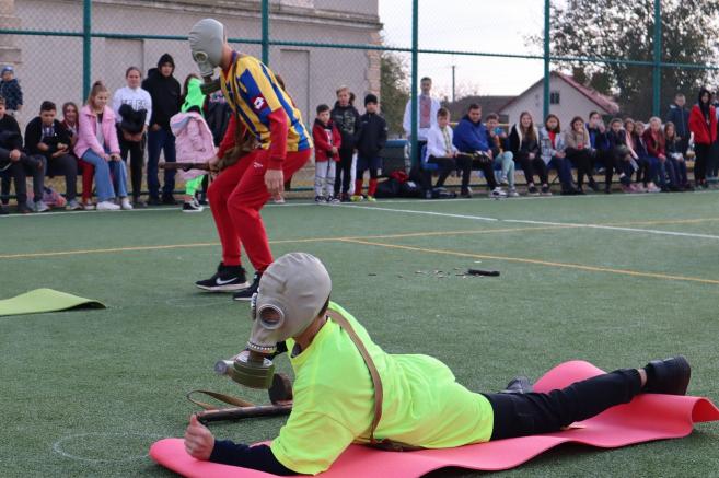 Íà ìàéäàí÷èêó ç³ øòó÷íèì ïîêðèòòÿì ó ñèë³, ñïðèòíîñò³, âèòðèâàëîñò³, øâèäêîñò³ òà âèíàõ³äëèâîñò³ çìàãàëèñÿ äâ³ çá³ðí³ êîìàíäè — «Ñòåïîâ³ îðëè» òà «Çàë³çí³ âîâêè», äî ñêëàäó ÿêèõ óâ³éøëè ó÷í³ òà â÷èòåë³ Ëàøê³âñüêî¿ øêîëè.