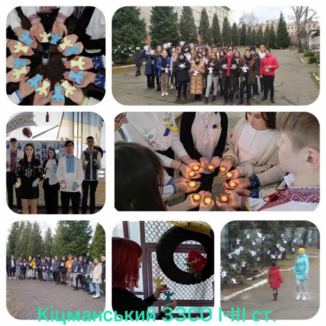 У закладах освіти Кіцманської міської ради сьогодні вшановували пам'ять Героїв Небесної Сотні .Адже допоки пам'ять людська жива,герої не вмирають ...