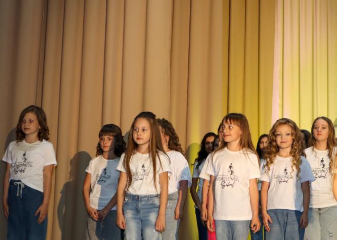 Творчий звіт вихованок модельної школи м.Кіцмань “Business Model School” став яскравою подією, що відбулася в нашому місті у неділю, 4 червня. Не позбавляти дітей дитинства, дарувати їм незабутні емоції та враження — це було в пріоритеті модельної школи впродовж непростого навчального року. Та незважаючи на всі перешкоди, 32 дівчаток успішно завершили курс «Я модель» і разом з випускниками попередніх років виступили на сцені з неймовірними художніми постановками дефіле в різних нарядах: національному і патріотичному вбранні, джинсовому стилі, красивих вишуканих сукнях.