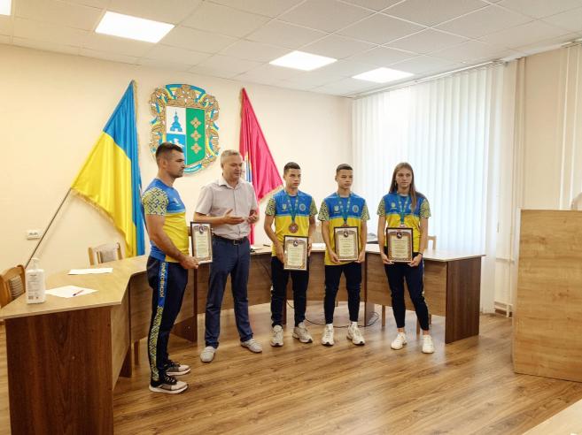 Çàñ³äàííÿ ðîçïî÷àëîñÿ íà ïðèºìí³é íîò³, àäæå çà ³í³ö³àòèâè ì³ñüêîãî ãîëîâè òà äåïóòàòñüêîãî êîðïóñó ʳöìàíñüêî¿ ì³ñüêî¿ ðàäè áóëî âèð³øåíî â³äçíà÷èòè ãðàìîòàìè þíèõ ñïîðòñìåí³â íàøî¿ ãðîìàäè – Ô³ë³ï÷óê Àíãåë³íó, Ðóñíàêà Àíäð³ÿ òà Ðóñíàêà Ñåðã³ÿ çà ïðèçîâ³ ì³ñöÿ íà ×åìï³îíàò³ ªâðîïè ç ê³êáîêñèíãó WAKO, ÿêèé íåùîäàâíî â³äáóâñÿ â Òóðå÷÷èí³. Òàêîæ ãðàìîòîþ áóëî â³äçíà÷åíî òðåíåðà – Ñåðã³ÿ Õðåïòóíà – çà çíà÷íèé âíåñîê ó ðîçâèòîê ñïîðòó â ʳöìàíñüê³é òåðèòîð³àëüí³é ãðîìàä³ òà ï³äãîòîâêó ïåðåìîæö³â ×åìï³îíàòó ªâðîïè ç ê³êáîêñèíãó WAKO.
