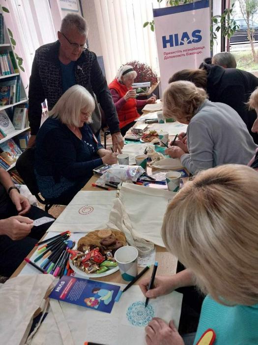 Захід відбувся у партнерстві з міжнародною організацією - HIAS Ukraine, яка влаштувала наприкінці зустрічі цікавий майстер-клас із розпису текстильних еко торбинок, тож кожен запрошений отримав змогу зробити для себе оригінальний шопер.