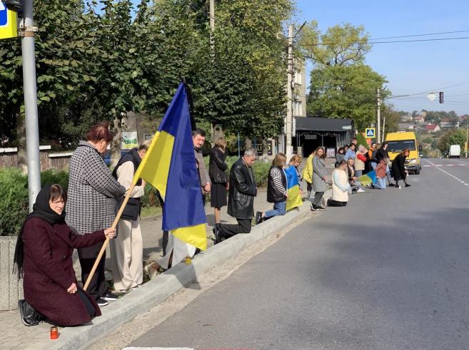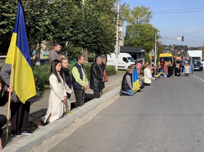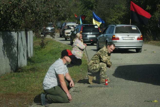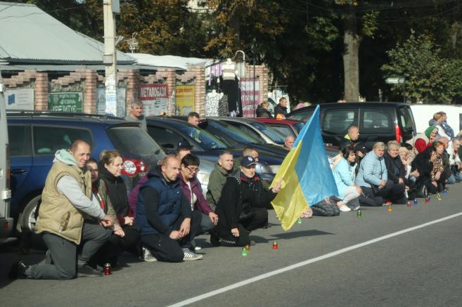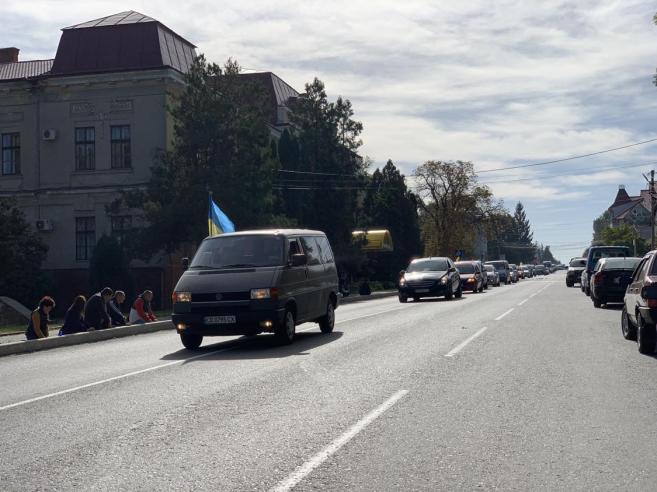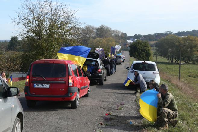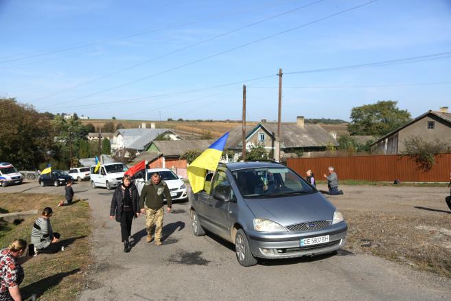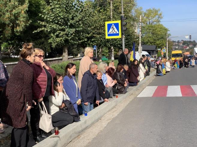 Траурну колону із полеглим у війні Героєм зустріли сьогодні навколішках мешканці нашої Кіцманської громади