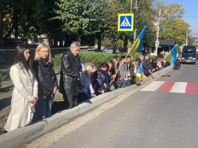 Живим ланцюгом шани Кіцманська громада зустріла навколішках полеглого у війні Героя ПАЗЮКА Василя Ярославовича.