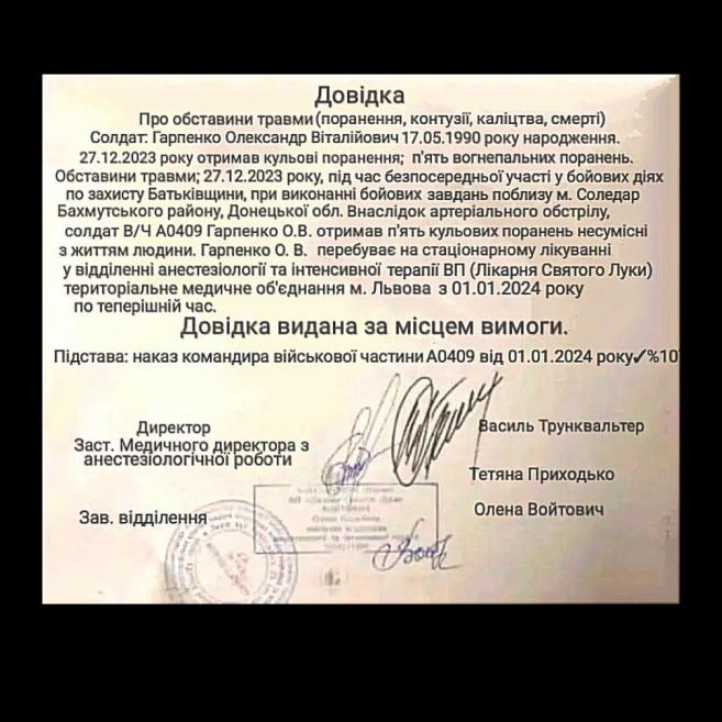❗Øàíîâíà ãðîìàäî❗ ÒÅÐ̲ÍÎÂÈÉ ÇÁ²Ð äëÿ ñîëäàòà Ãàðïåíêî Îëåêñàíäðà ç ì. ×åðí³âö³❗