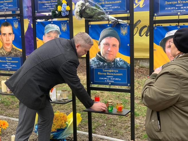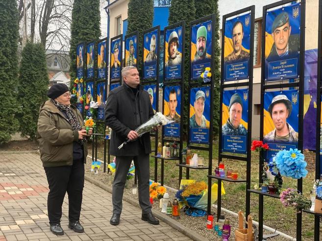 Зі свічкою пам’яті та траурними квітами вшанувати нашого захисника на Алеї Слави прийшли міський голова Кіцманської територіальної громади Сергій Булега та голова Кіцманського волонтерського центру «Допомога українській армії» Ганна Юрбаш.