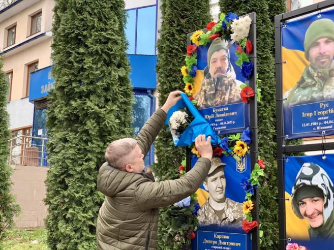 Зі свічкою пам'яті та траурними квітами віддати шану нашому захиснику на Алею Слави прийшли міський голова Кіцманської територіальної громади Сергій Булега та голова Кіцманського волонтерського центру «Допомога українській армії» Ганна Юрбаш.